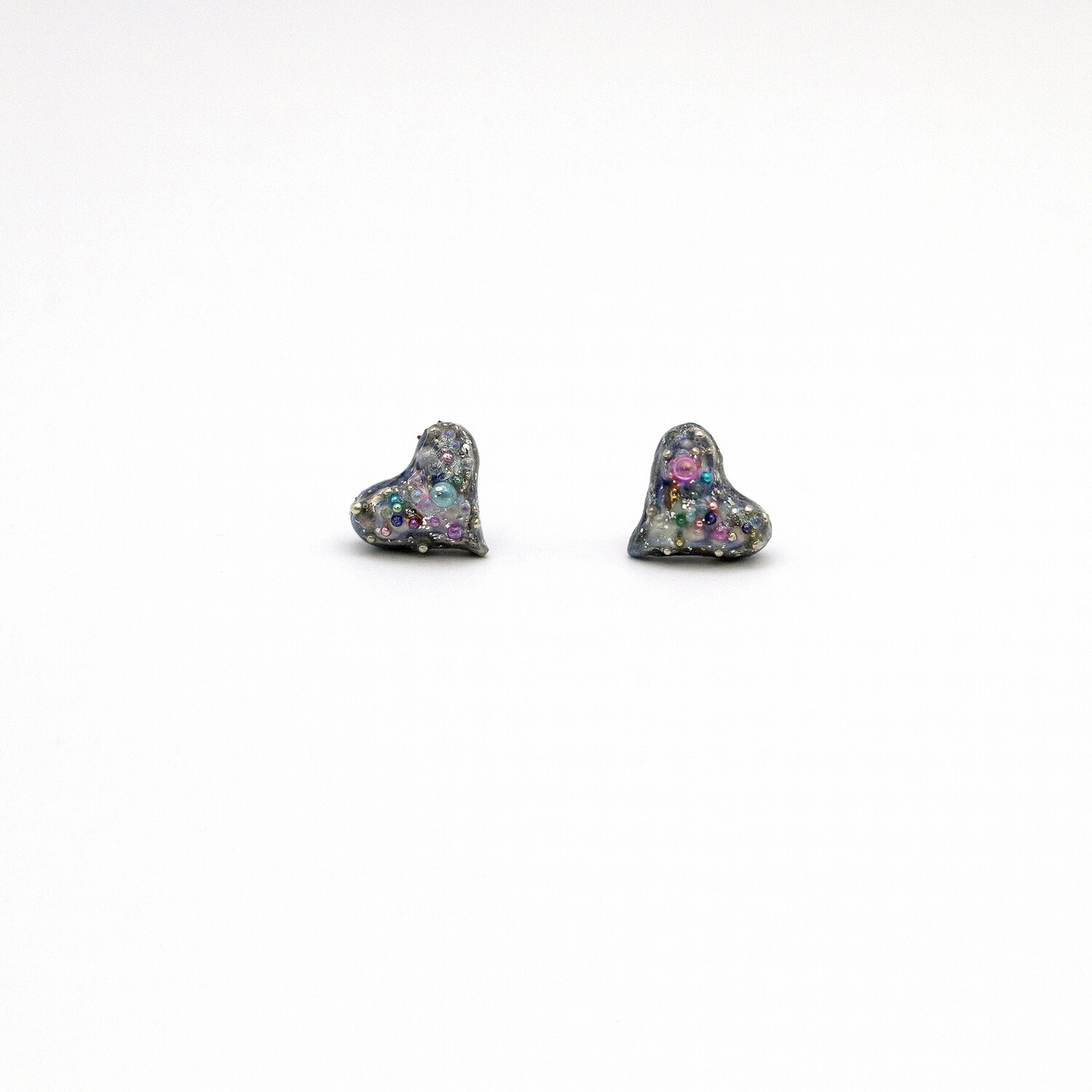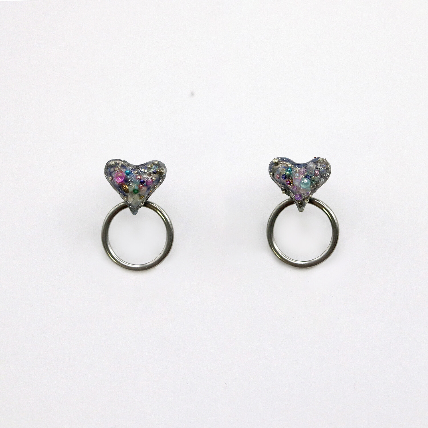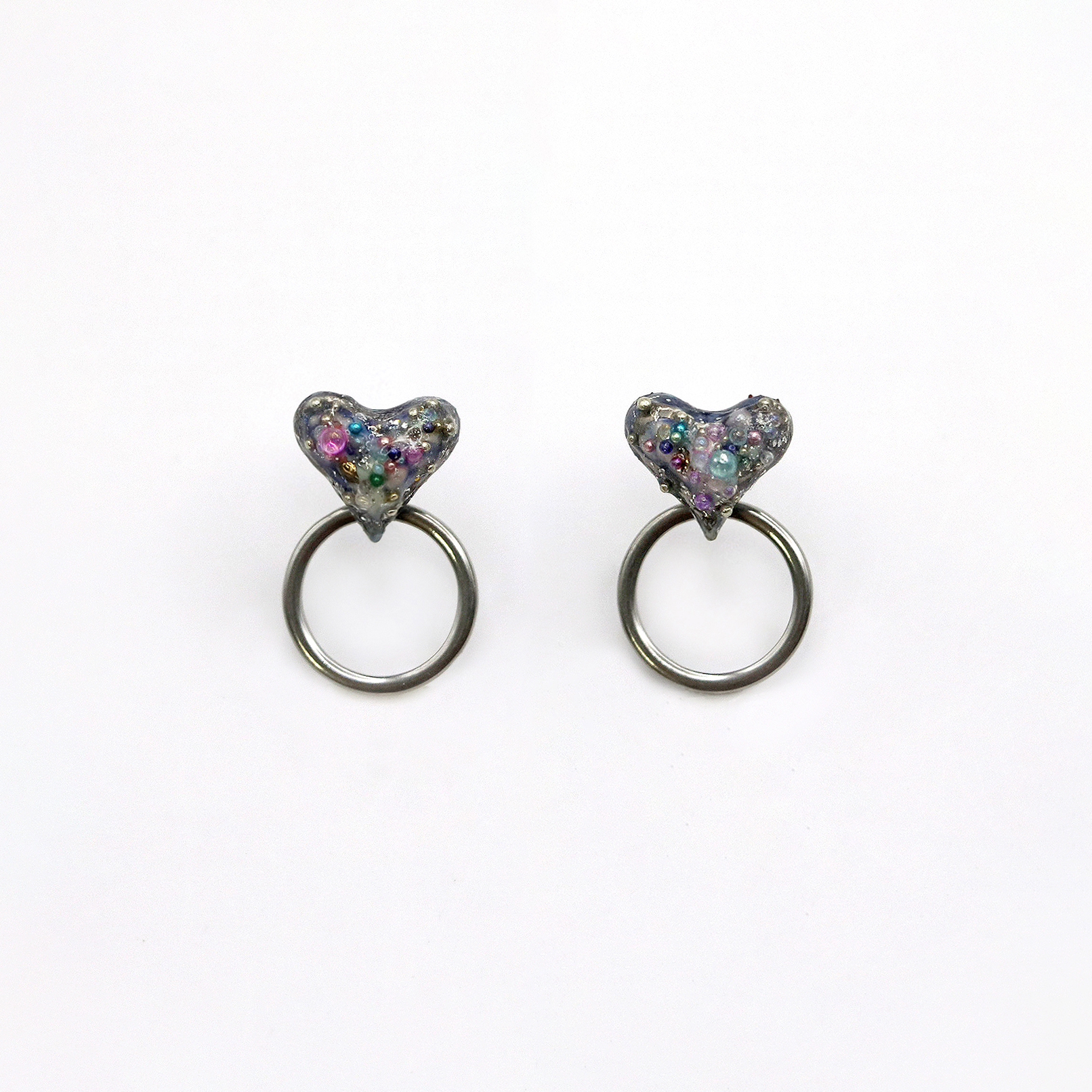 -Pendant: stoneware fired three times with luster and glass, then coated with resin and acrylic beads