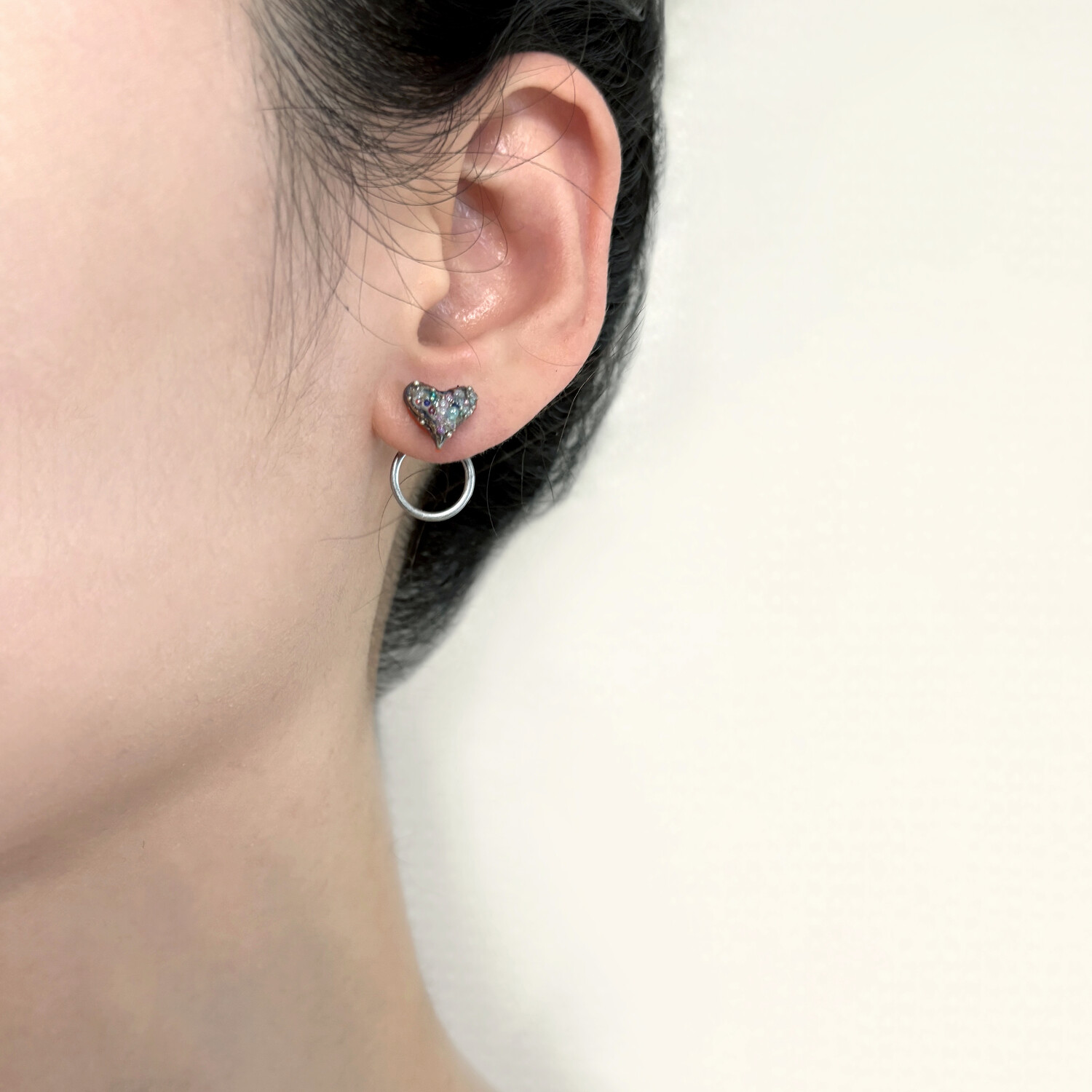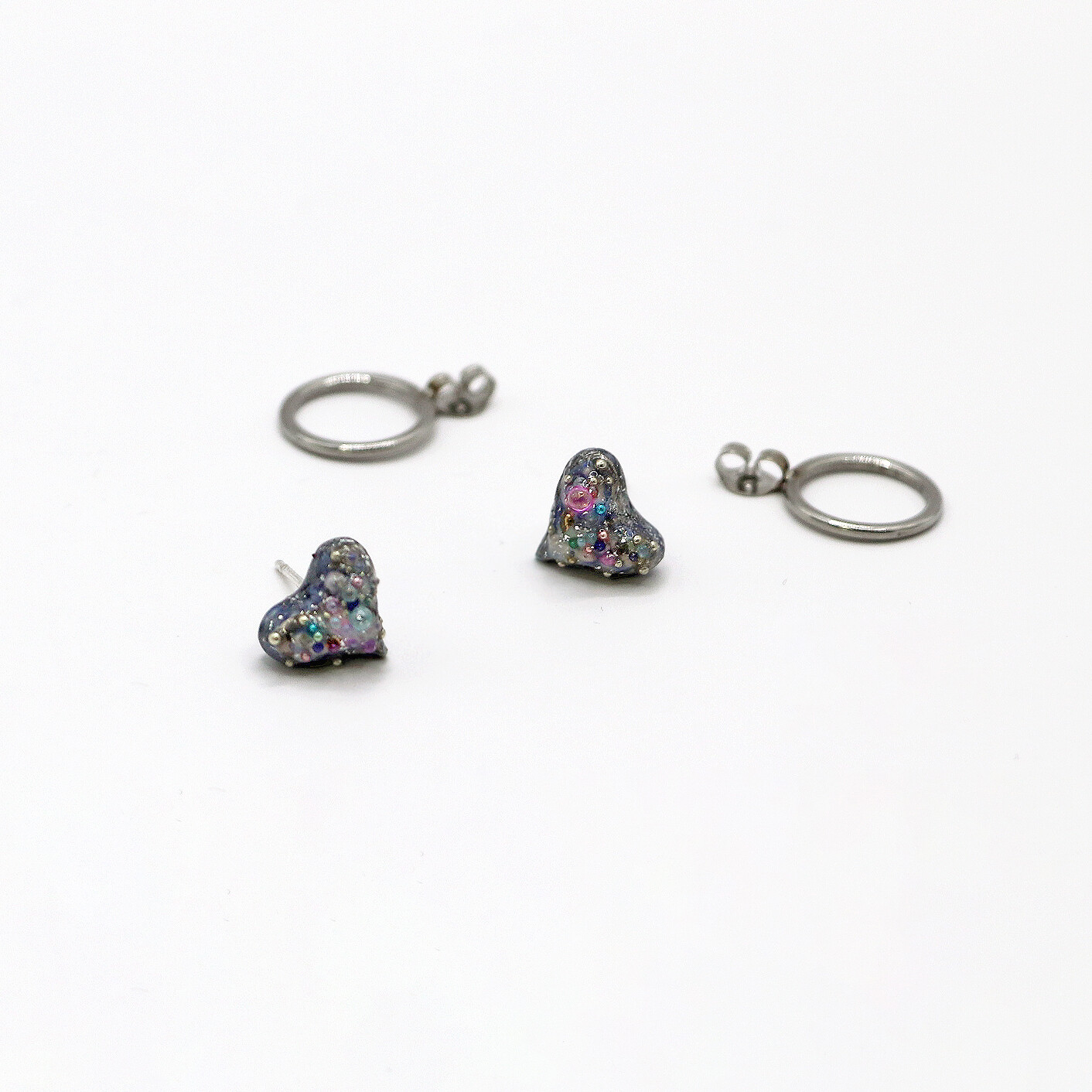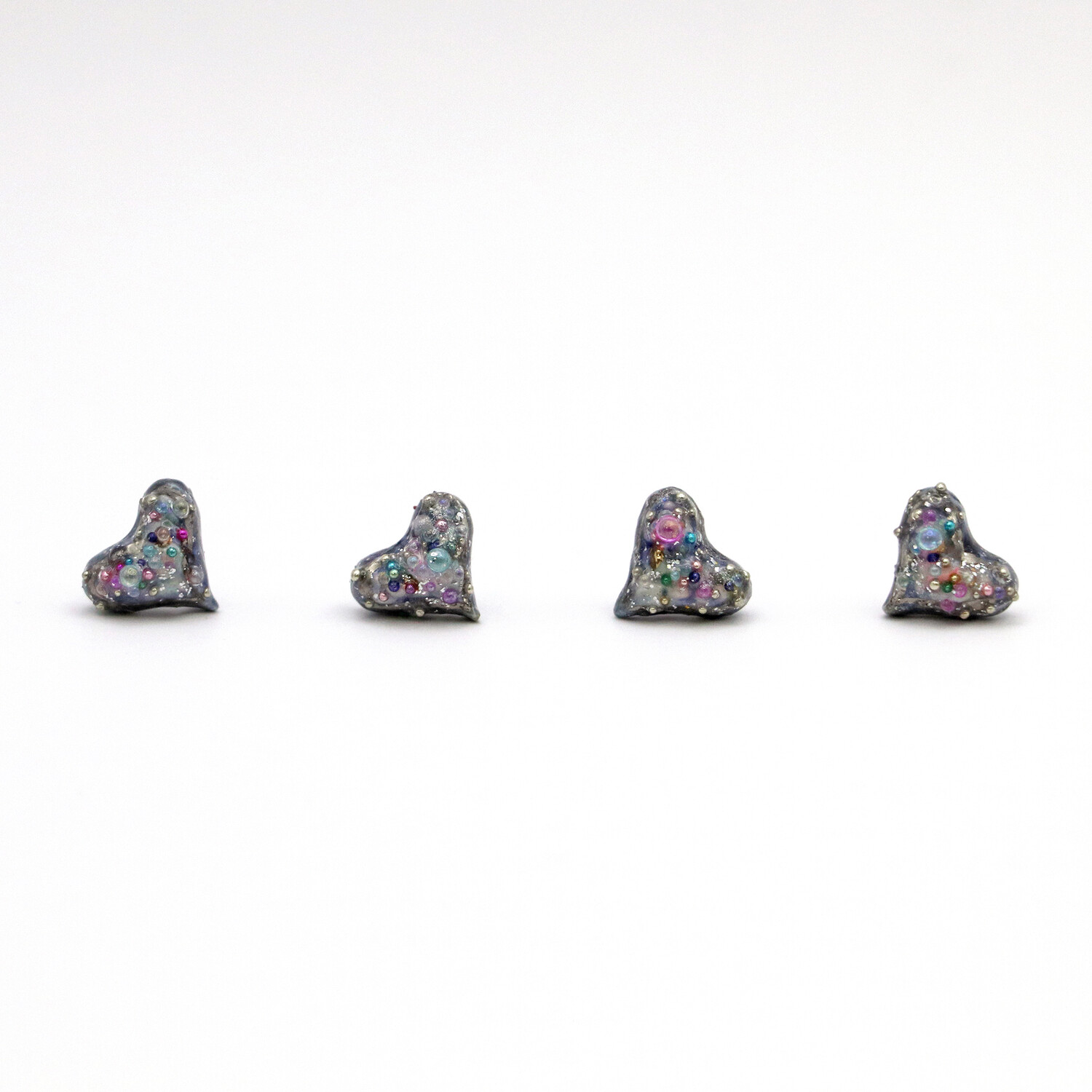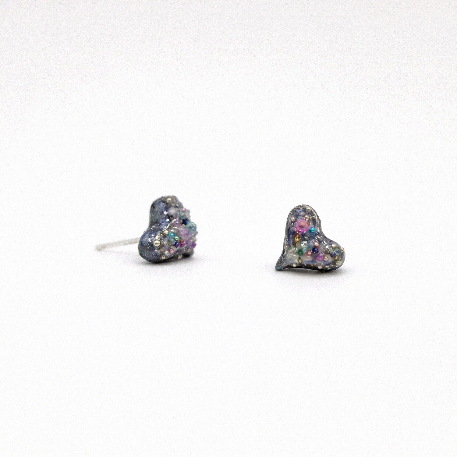 -Pendant: stoneware fired three times with luster and glass, then coated with resin and acrylic beads