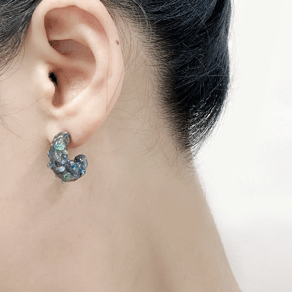 -Pendant: stoneware fired three times with German white-gold(19.2k) luster, then coated with resin and acrylic beads